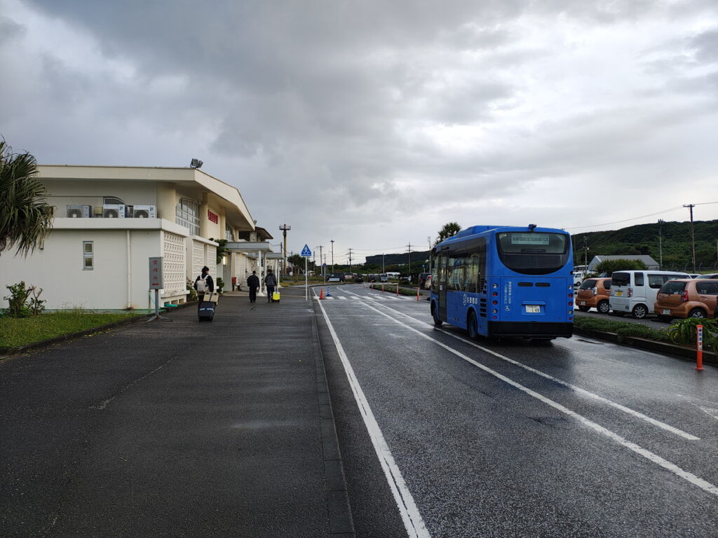 青いバスが与那国の循環バスで無料で乗ることができる。