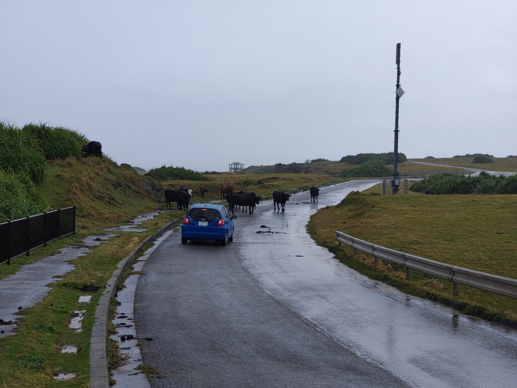 勇気をあるクルマが追い抜いて行ったけど、牛はものともしなかった。