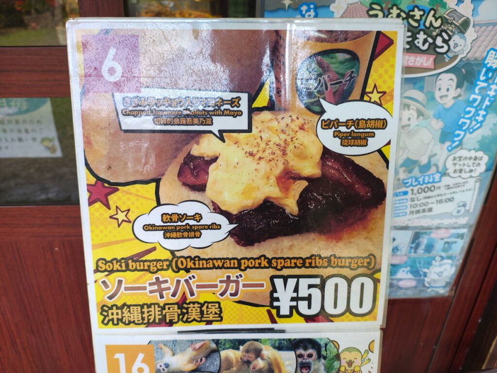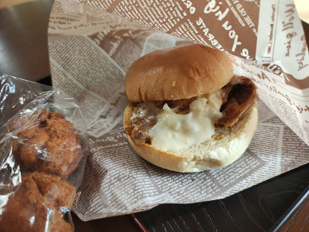 ソーキバーガーとサーターアンダギーという石垣島のドーナツを注文(650円)