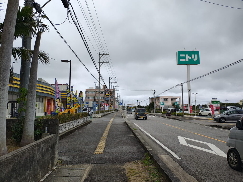 フェリーターミナルから少し離れたところ資本系の大型店舗が並ぶ。